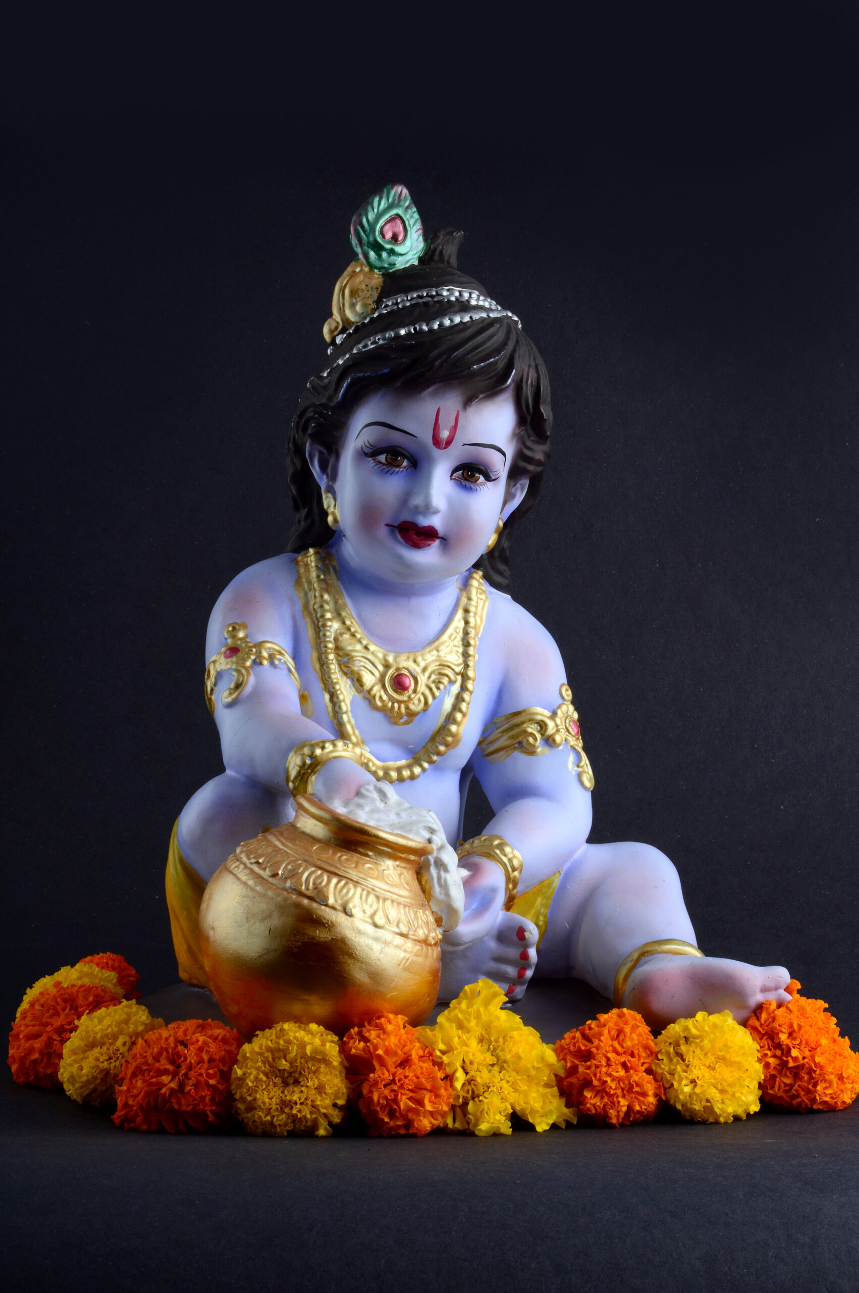 Hindu God Krishna on dark background